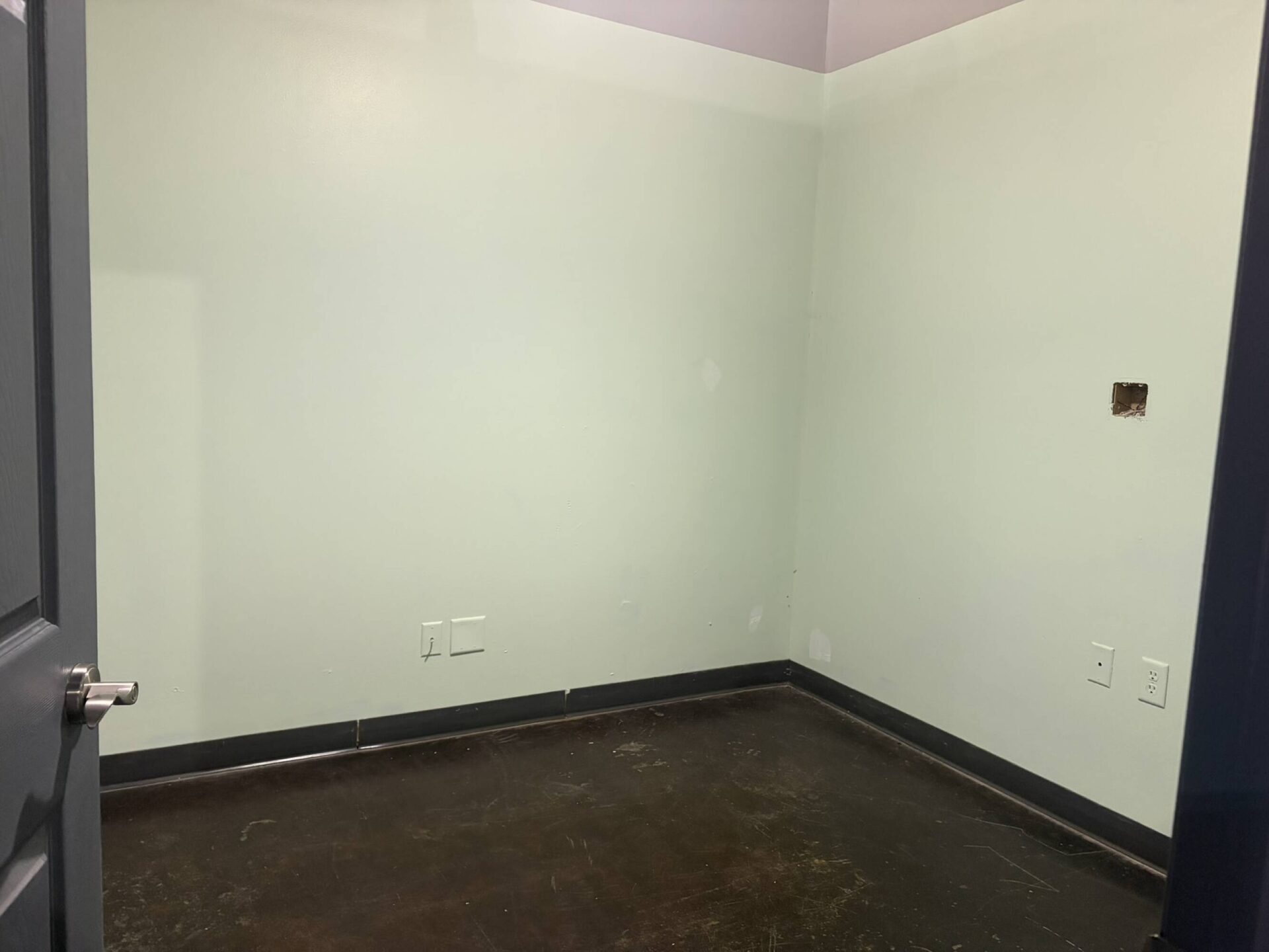 in suite restrooms & storage/mechanical room - Large glass windows facing Marion Road for natural