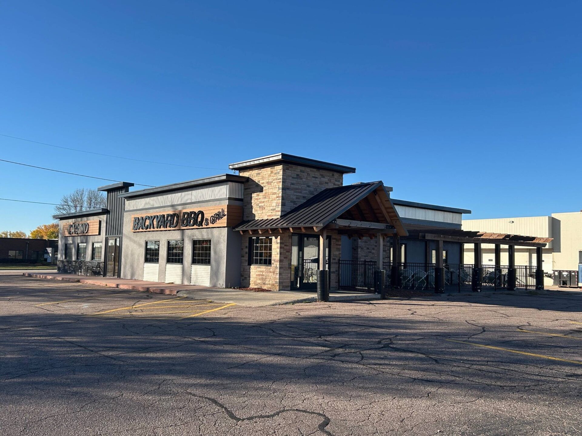 - Building Size: 3,852 SF (portion leased to Backyard BBQ; balance open, former casino space)